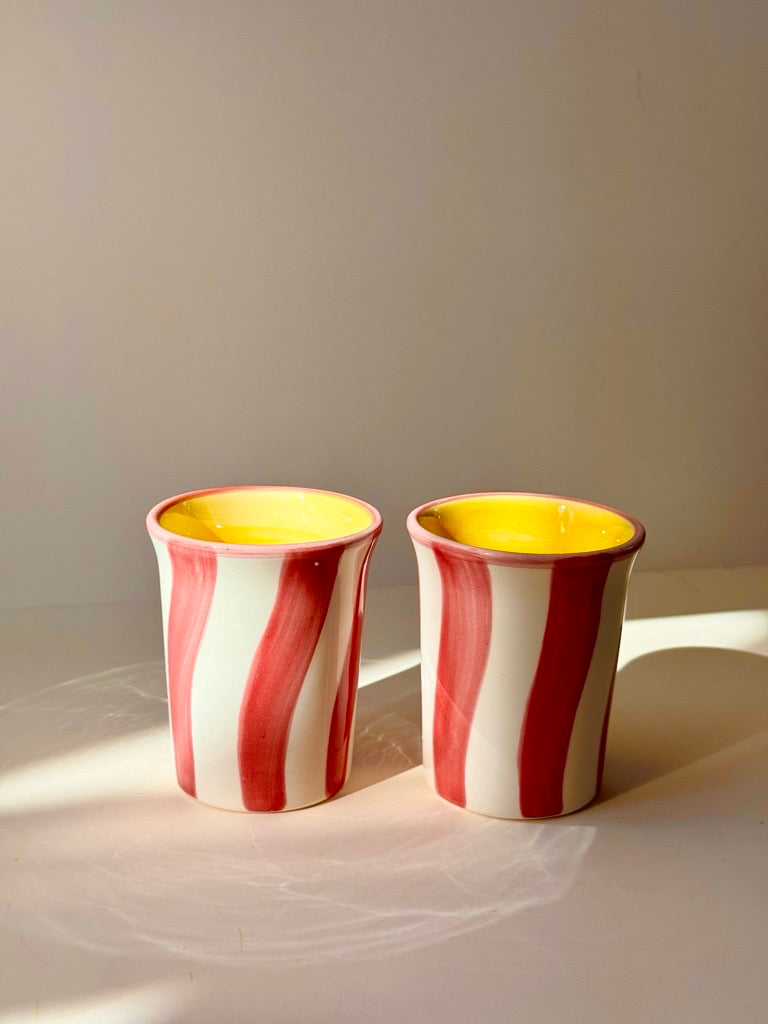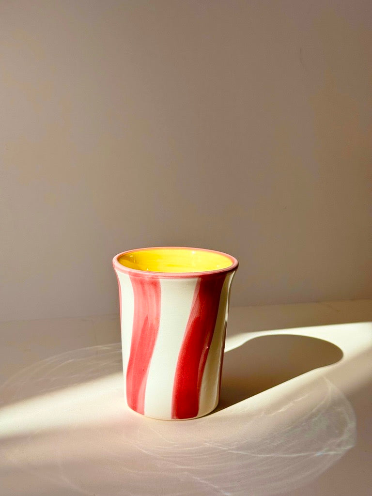 Ceramic Breakfast Cup - White & Pink Stripes (250ml)