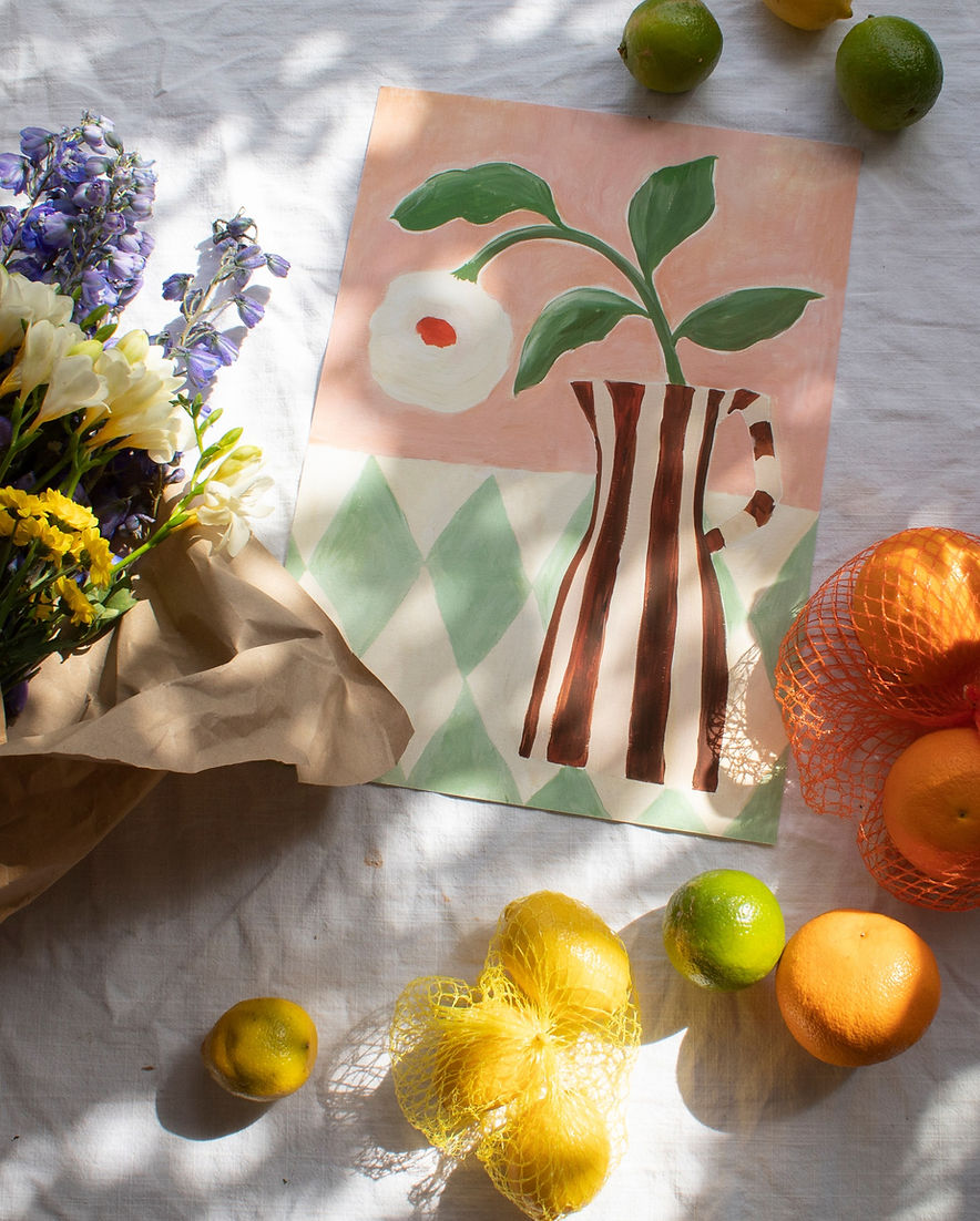 'Market day' art print of the original painting, by London-based print designer and artist Emily Daborn.